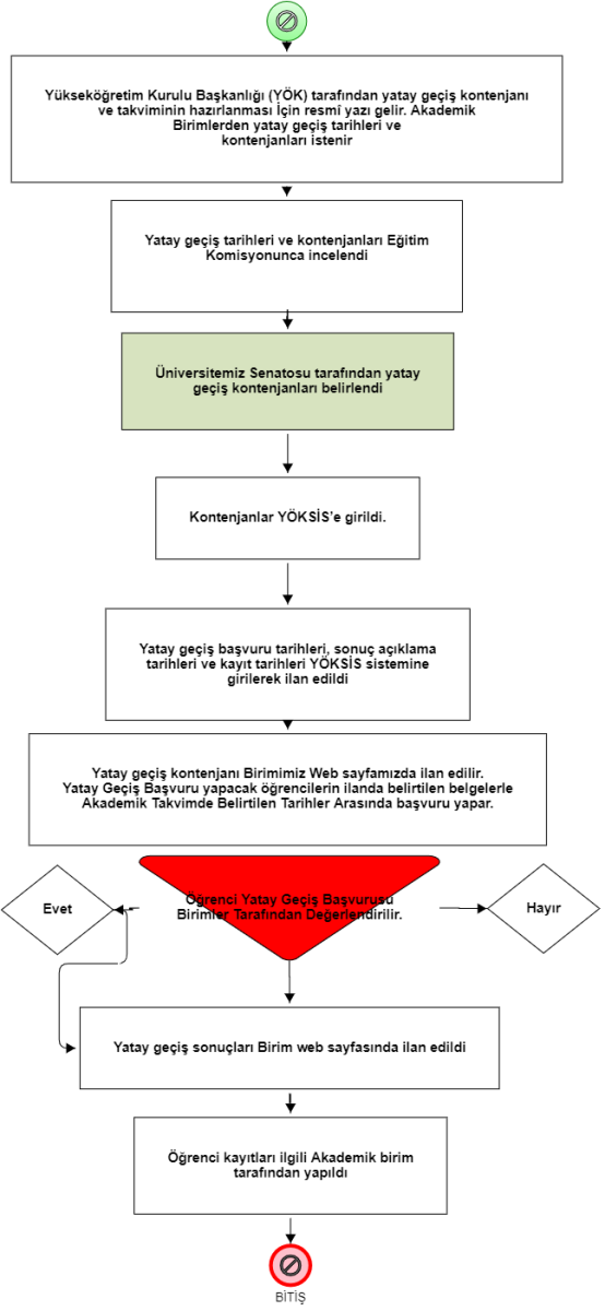 | KURUMLARARASI YATAY GEÇİŞ BAŞVURUSU VE KAYIT İŞLEMLERİ İŞ AKIŞ ŞEMASI |