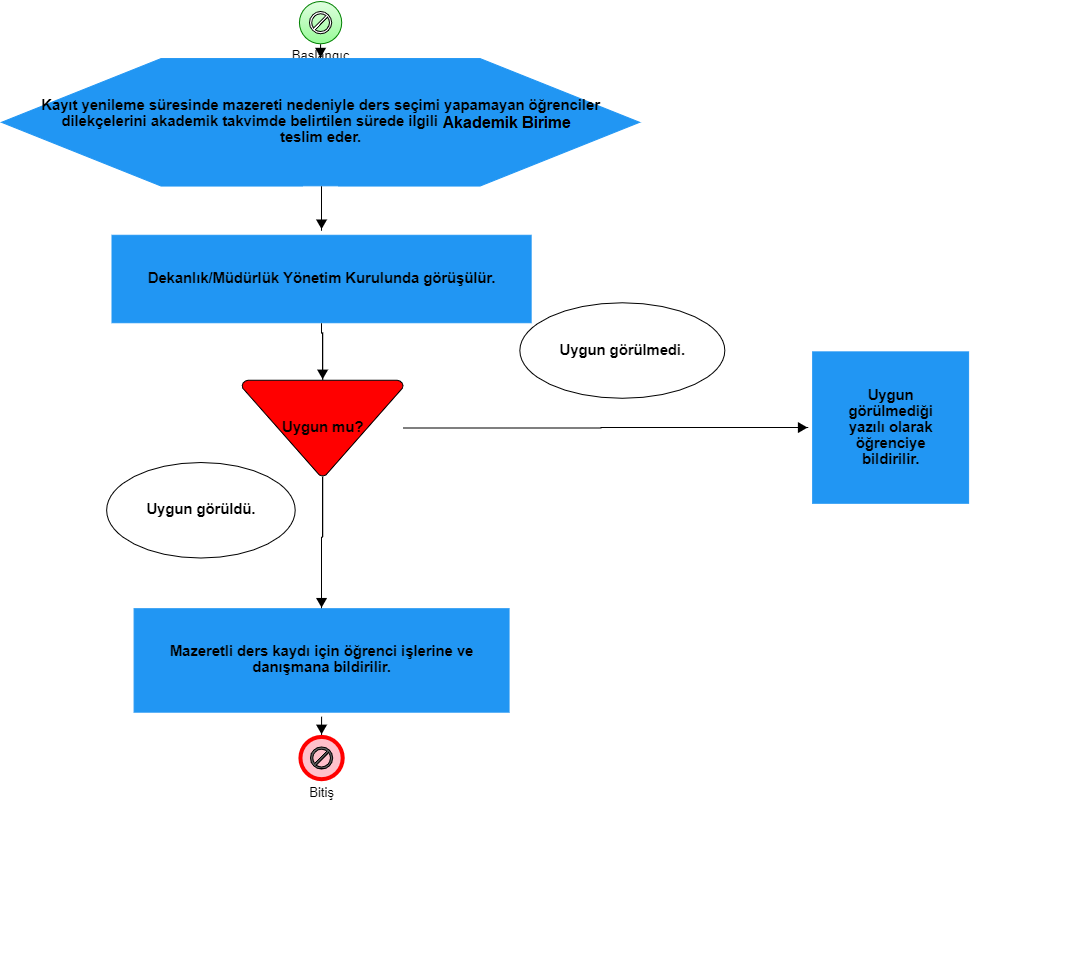 | MAZERETLİ KAYIT YENİLEME İŞ AKIŞ ŞEMASI |