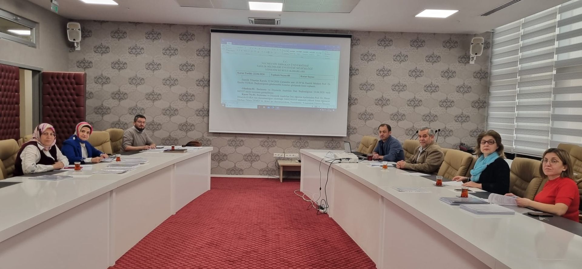 Necmettin Erbakan Üniversitesi Sağlık Bilimleri Enstitüsü Yönetim Kurulu toplantısı, Enstitü Müdürü Prof. Dr. Hasibe VURAL başkanlığında 22 Nisan 2026 tarihinde gerçekleştirildi.