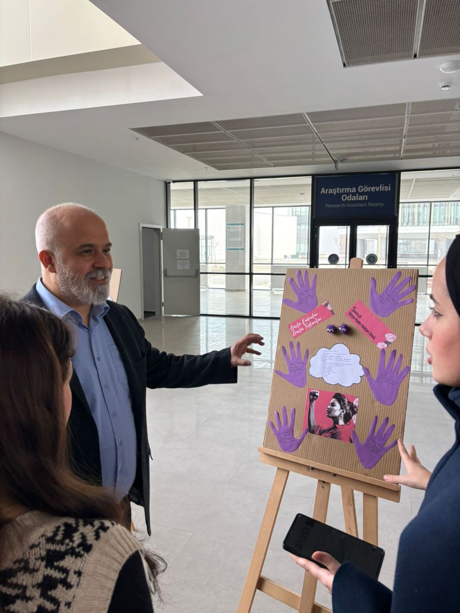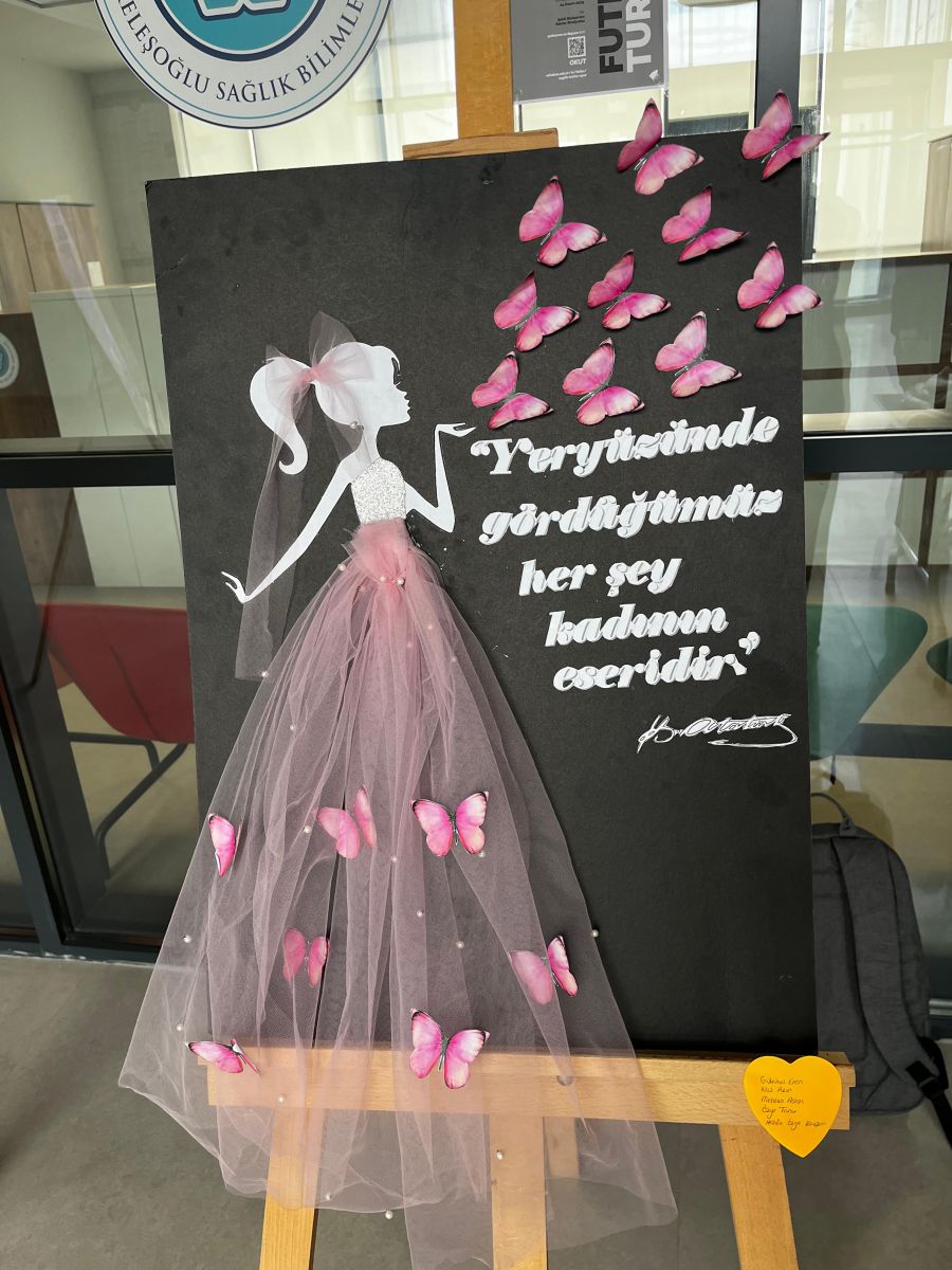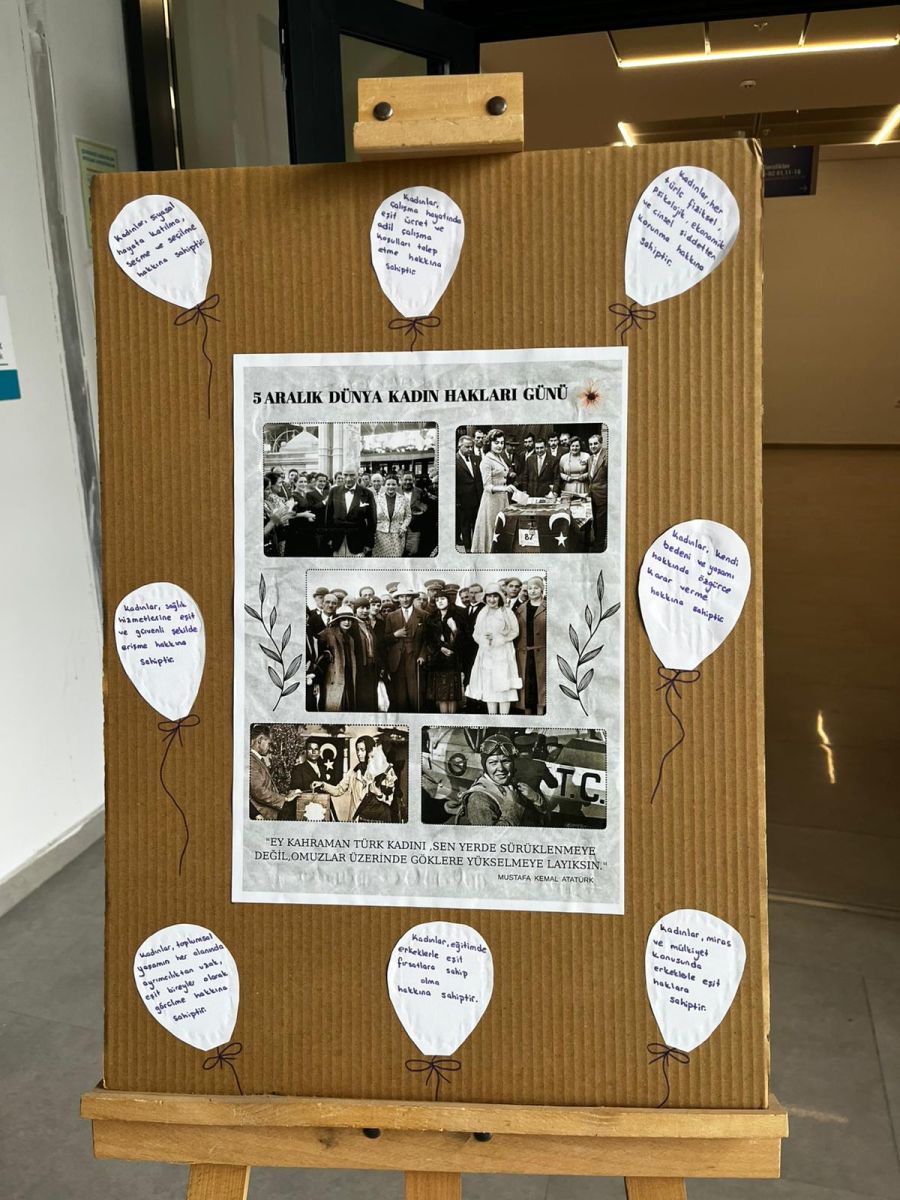 Nezahat Keleşoğlu Sağlık Bilimleri Fakültesinde 5 Aralık Dünya Kadın Hakları günü kapsamında Sosyal Hizmet ve Etkileşim Topluluğu üyesi öğrenciler tarafından Kadın Hakları temalı kolaj çalışmaları sergisi düzenlendi. Fuaye alanını ziyaret eden Dekan Prof. Dr. Ayhan Uludağ çalışmalarından dolayı öğrencilere teşekkür ederek, günün anlam ve önemini şu cümlelerle vurguladı: "Sağlık camiası olarak kadınların sahip olduğu hakları koruma ve geliştirme odaklı çalışmalarda yer almaktan memnuniyet duyuyoruz. Tüm kadınların bu anlamlı gününü kutluyorum."