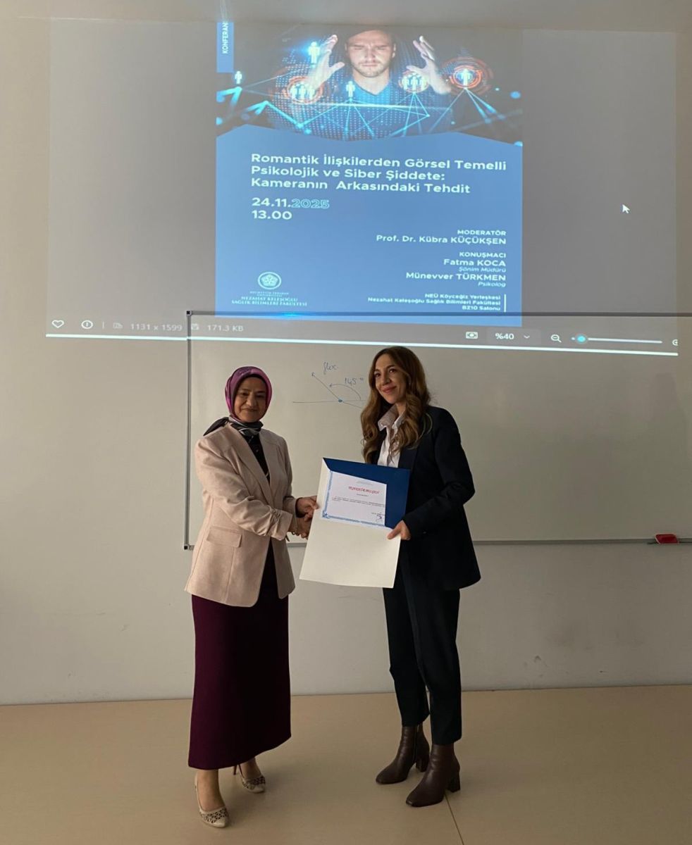 25 Kasım Kadına Yönelik Şiddete Karşı Uluslararası Mücadele Günü kapsamında Sosyal Hizmet Bölümü tarafından düzenlenen etkinlikte "Romantik İlişkilerde Görsel Temelli Psikolojik ve Siber Şiddet: Kameranın Arkasındaki Tehdit" başlıklı sunum gerçekleştirilmiştir. Emeği geçen hocalarımıza ve katılımcılara teşekkür ederiz.