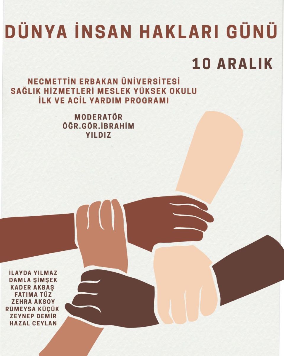 Okulumuzda İlk ve Acil Yardım Programı öğrencileri tarafından hazırlanan Öğr. Gör. İbrahim Yıldız moderatörlüğünde sunulan ‘İnsan Hakları‘ konulu söyleşi başarı ile gerçekleştirildi. Sunumlarından dolayı öğrencilerimize teşekkür ederiz.