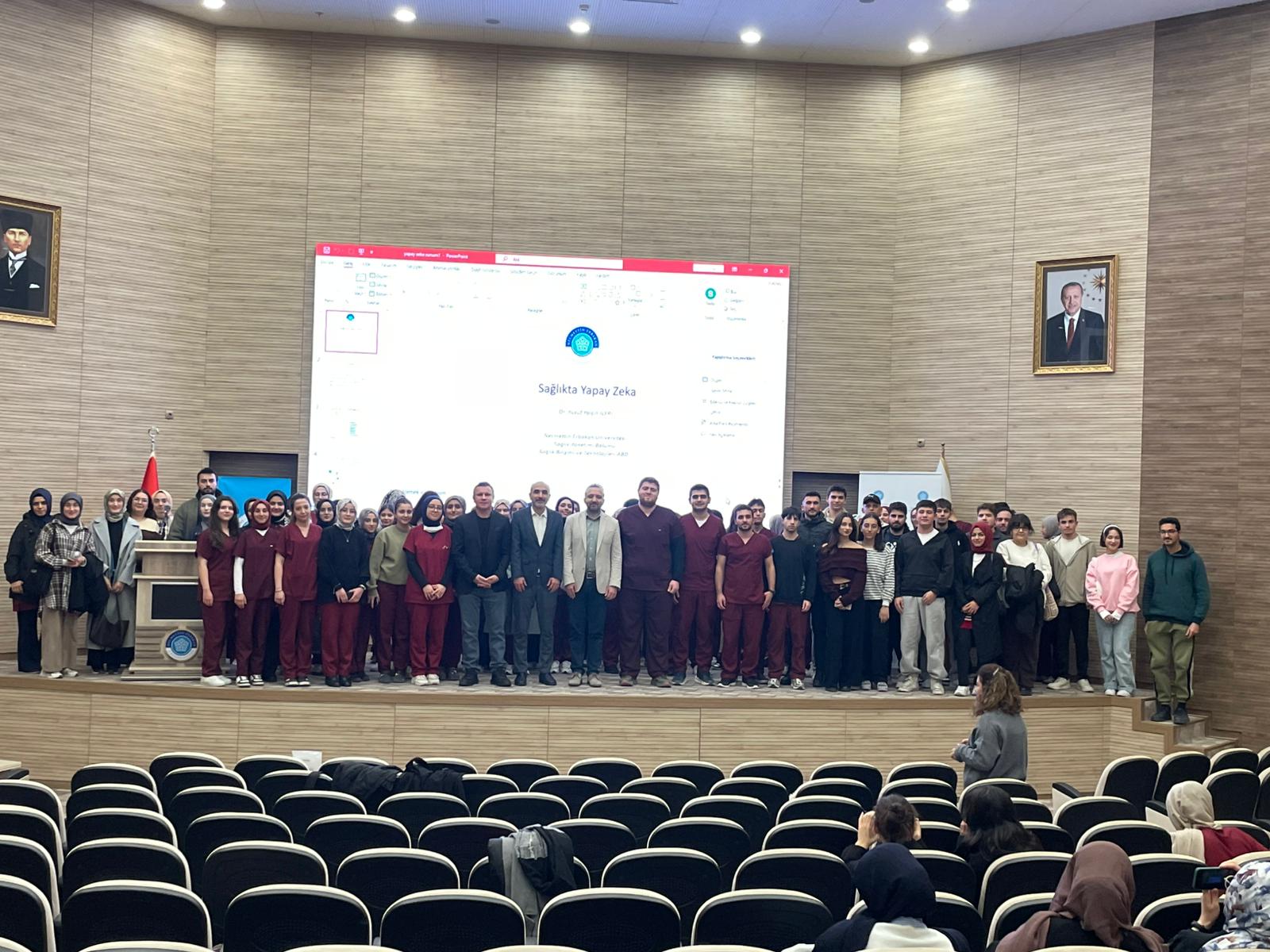 Meslek Yüksekokulumuz tarafından düzenlenen “Sağlıkta Yapay Zekâ” konulu konferans, öğrencilerimizin yoğun katılımıyla gerçekleştirildi. NEÜ Sağlık Yerleşkesi Tıp Fakültesi Prof. Dr. Asım Duman Konferans Salonu’nda düzenlenen konferansın moderatörlüğünü Öğr. Gör. Dr. Özer ARIK üstlenirken, NEÜ Nezahat Keleşoğlu Sağlık Bilimleri Fakültesi öğretim üyesi Prof. Dr. Yusuf Yalçın İLERİ konuşmacı olarak yer aldı. Konferansta, sağlık alanında yapay zekâ uygulamalarının güncel durumu, klinik karar destek sistemleri, sağlık hizmetlerinde dijital dönüşüm ve geleceğe yönelik öngörüler ele alındı. Sunumun ardından gerçekleştirilen soru-cevap bölümünde, öğrenciler merak ettikleri konuları doğrudan konuşmacıya yöneltme fırsatı buldu. Etkinlik, konuşmacıya teşekkür edilmesi ve günün anısına plaket takdimi ile sona erdi. Konferansın gerçekleştirilmesine verdikleri desteklerden dolayı okul yönetimimize, etkinliğimize katılım sağlayan sevgili öğrencilerimize ve tüm misafirlerimize şükranlarımızı sunarız.