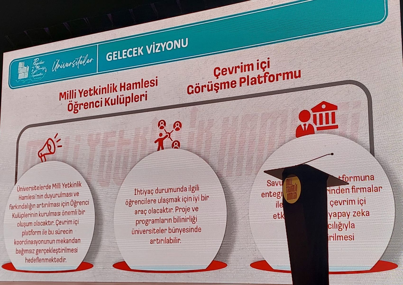 Türkiye genelinde 190 Üniversiteden Kariyer Merkezi Yöneticileri ile Sağlık, Kültür ve Spor Birim Temsilcilerinin yer aldığı toplantıda; "Milli Yetkinlik Hamlesi'nin öğrencilerimize sunmuş olduğu fırsatlar, Üniversitelerimiz ile olan etkileşim kanalları ve yeni dönemde öğrencilerimizin yetkinlik gelişimi için birlikte önemli adımlar atılması ve Üniversitelerde bu alan ile ilgili Savunma Sanayi Milli Yetkinlik Öğrenci Kulüplerinin kurulmasına yönelik öğrencilerin teşvik edilmesiyle alakalı değerlendirmelerde bulunuldu.