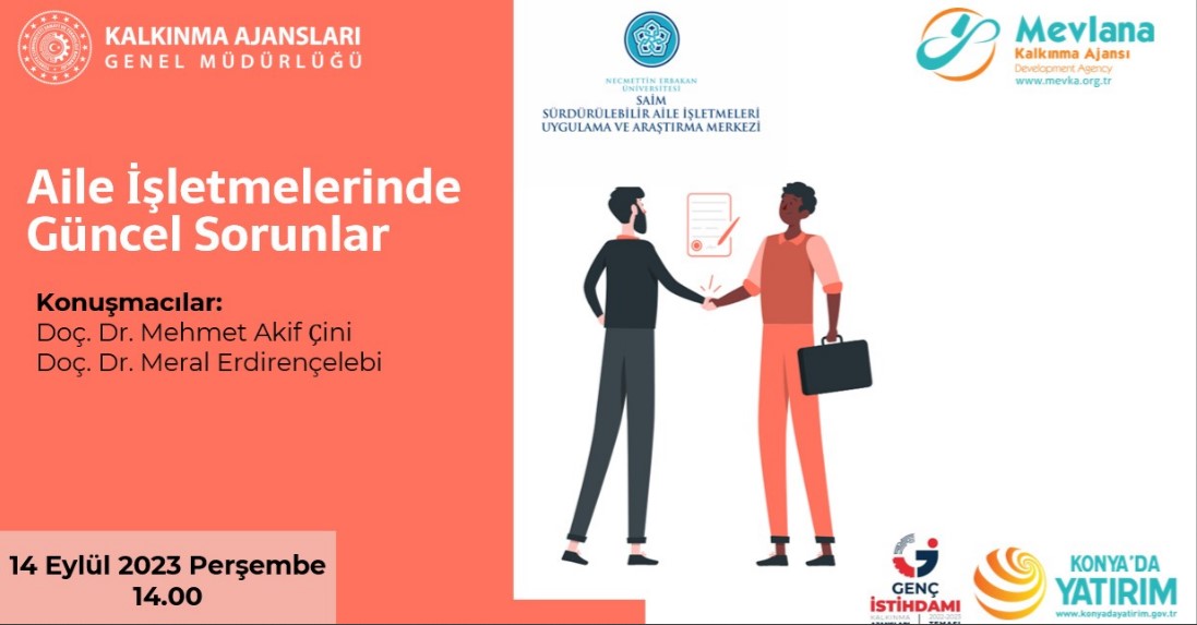 Üniversitemiz, “Sürdürülebilir Aile İşletmeleri Uygulama ve Araştırma Merkezi” (SAİM) yeni etkinliğini Mevlana Kalkınma Ajansı işbirliği ile 14.09.2023 saat 14:00 da webnarla gerçekleştirdi.
