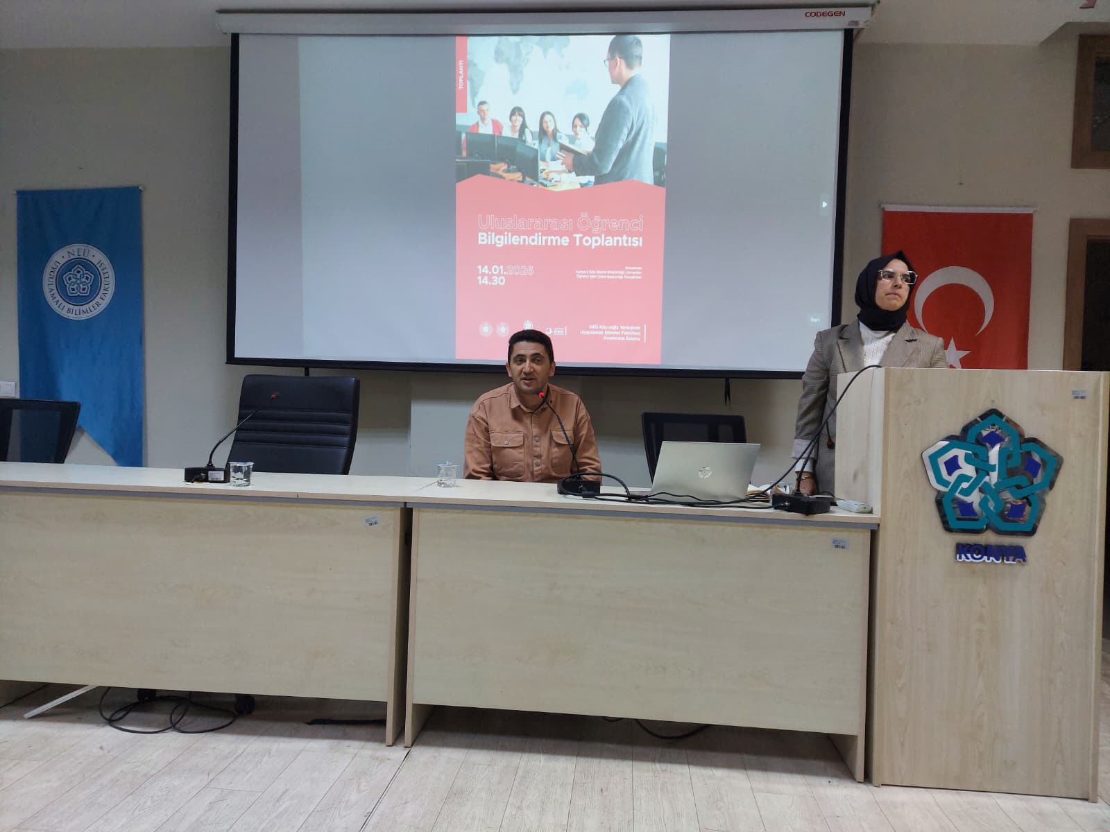 Necmettin Erbakan Üniversitesi Dış İlişkiler Genel Koordinatörlüğü Uluslararası Öğrenci Ofisi tarafından düzenlenen Uluslararası Öğrenci Bilgilendirme Toplantısı, 14 Ocak 2026 tarihinde NEÜ Köyceğiz Yerleşkesi Uygulamalı Bilimler Fakültesi Konferans Salonu’nda gerçekleştirildi.