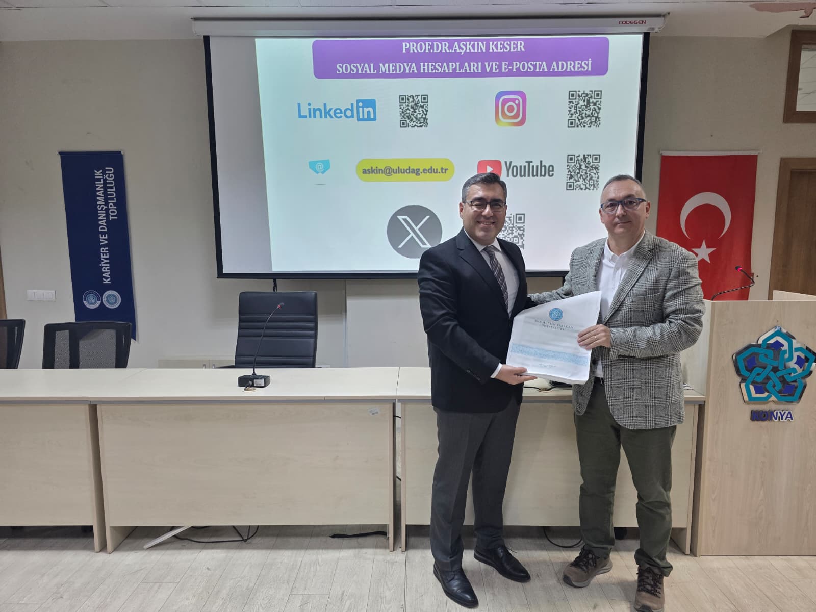 Necmettin Erbakan Üniversitesi Uygulamalı Bilimler Fakültesi ile Kariyer Merkezi ve Mezun İlişkileri Koordinatörlüğü’nün ortaklaşa düzenlediği “Değişen Paradigmalar: Kariyer ve İşin Geleceği” konulu seminer, öğrencilerimizin yoğun katılımıyla Uygulamalı Bilimler Fakültesi Konferans Salonu’nda gerçekleştirildi.