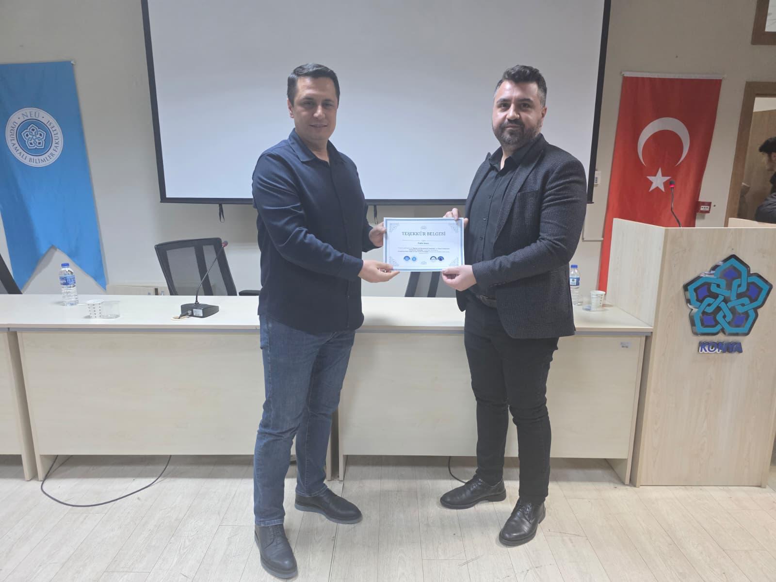 18 Şubat 2026 tarihinde Fakültemiz Konferans Salonu'nda gerçekleştirilen etkinliğe; Konya İl Ticaret Müdürü Mustafa Çağlayan, Şube Müdürü Zekeriya Olgunçelik, İl Ticaret Müdürlüğü Uzmanı Fatih Uzun, fakülte akademisyenleri ve çok sayıda öğrenci katıldı.