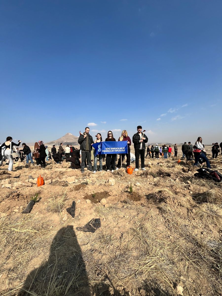 Genç Bankacılar Ve Finansçılar Topluluğu 11 Kasım Milli Ağaçlandırma Günü kapsamında üniversitemiz tarafından düzenlenen fidan dikim etkinliğine aktif katılım sağladı. Çevre bilincinin geliştirilmesi ve gelecek nesillere daha yeşil bir dünya bırakılması amacıyla gerçekleştirilen etkinlikte, topluluk başkanı ve üyeleri gönüllü olarak fidan dikimi yaparak doğaya katkıda bulundu.