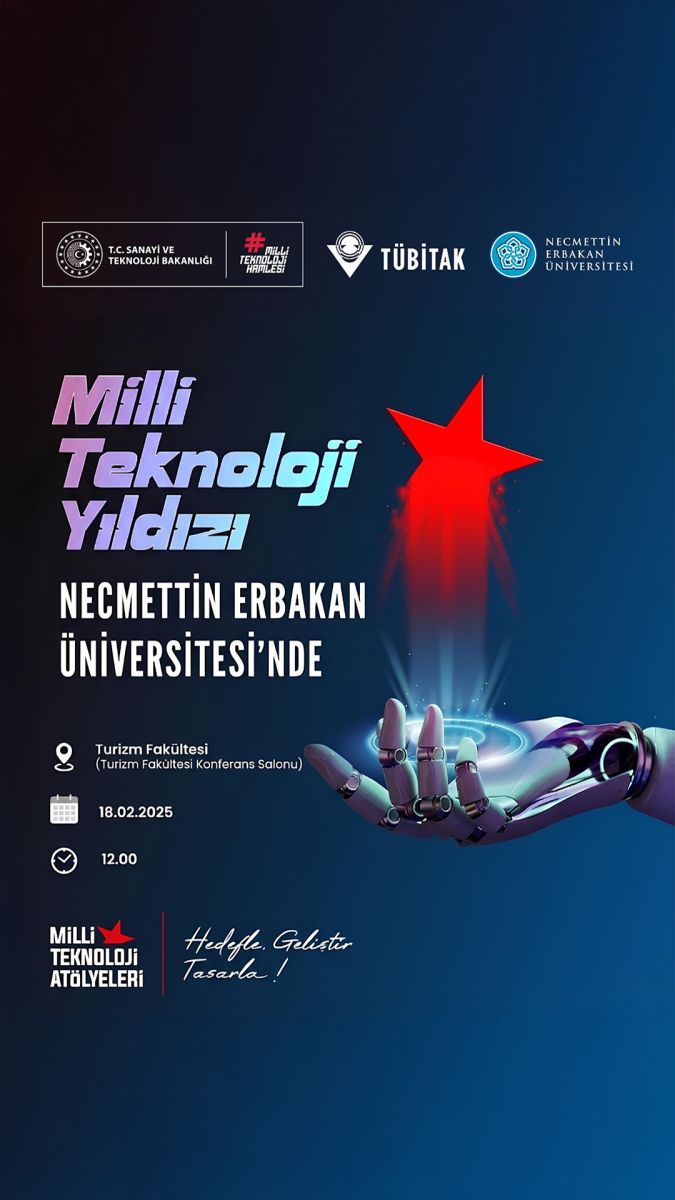 Ülkemizin Milli Teknoloji Hamlesi hedefleri doğrultusunda, TÜBİTAK Milli Teknoloji Atölyeleri kapsamında gençlere üretim kültürü kazandırmak ve öğrencilerimizin hayallerini, fikirlerini ve projelerini hayata geçirmelerine imkân sağlamak amacıyla üniversitemizde kurulan Milli Teknoloji Atölyesi için Turizm Fakültesi bünyesinde Tanıtım Semineri düzenlenecektir.