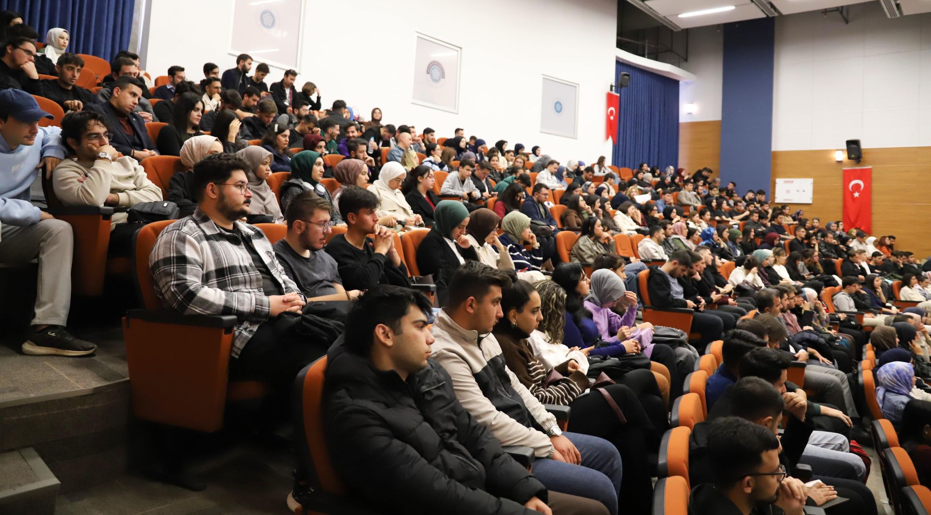 Programın açılış konuşmasını gerçekleştiren Prof. Dr. Hidayet Oğuz, “Rektörlük olarak öğrenci topluluklarına büyük önem veriyoruz. Öğrenci topluluklarımızın faaliyetlerini destekliyor, yapılan çalışmaları ilgi ile takip ediyoruz. Bugün de tüm insanlık için çok önemli ve hayati bir konu olan Filistin’i konuşmak için bir araya geldik. Sayın Başkanımız Şeref Malkoç’u konuk etmekten büyük memnuniyet duyuyor, anlatacaklarını merakla bekliyorum. Programın hayırlara vesile olmasını temenni ediyorum” dedi.