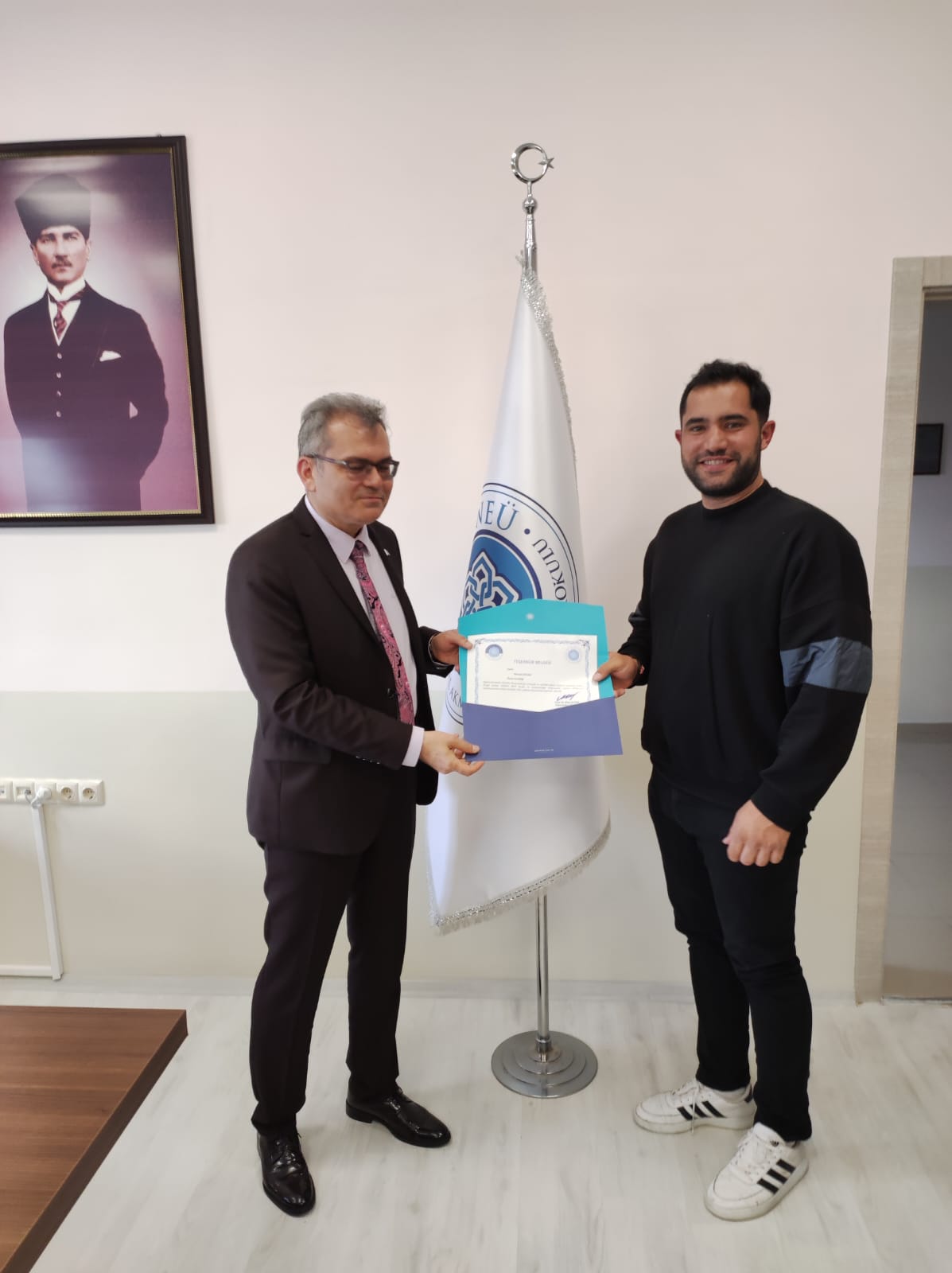 Yüksekokulumuz bünyesinde kurulan 2023-2024 Eğitim-Öğretim yılında ilk mezunları veren Atçılık ve Antrönörlüğü Programına eğitim desteklerini esirgemeyen Özsarı Atçiftliği işletme sahibi Oğuz ÖZSARI'ya , Çavuşoğulları Harası işletme sahibi Nejat TÜRKTAŞ'a, Uçak Harası işletme sahibi Ali UÇAK'a ve Sabri AKSU At Çiftiği Sorumlusu Tamer Oğuzhan KARA'ya desteklerinden dolayı Yüksekokul Müdürümüz Prof. Dr. Nuri ALTUĞ tarafından makamında ağırlanarak Teşekkür Belgeleri taktim edilmiştir.