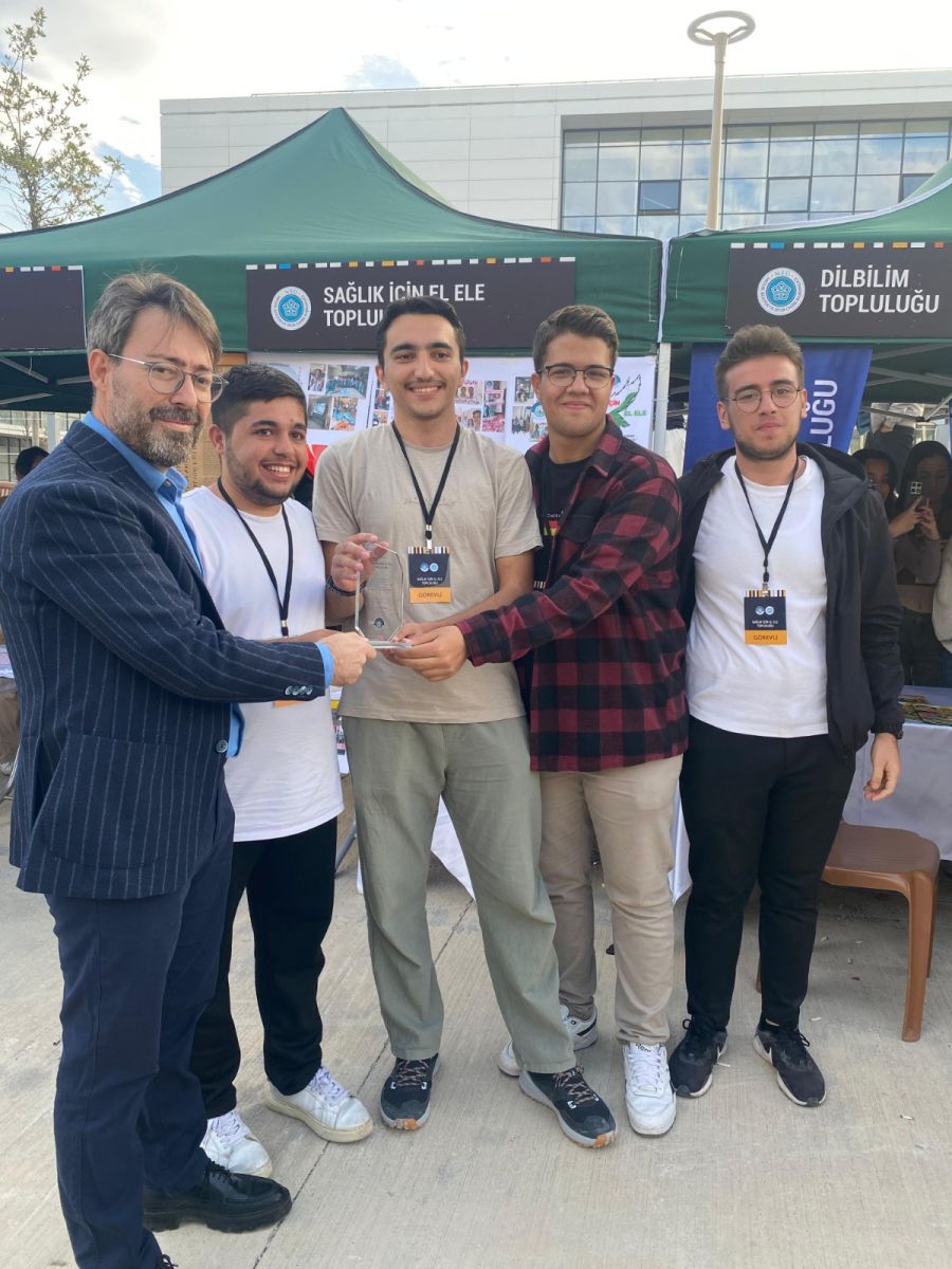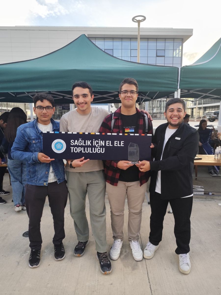 Üniversitemiz tarafından bu yıl dördüncüsü düzenlenen ÜNİ101FEST'25 etkinliğinde fakültemiz bünyesinde faaliyet gösteren “Sağlık İçin El Ele” öğrenci topluluğu stant açarak topluluk faaliyetlerini tanıtmış, etkinliğe fakültemizin tüm öğrencileri katılımları ile destek olmuştur. Birinci sınıf öğrencilerimizde mentörleri ile birlikte etkinliğe katılmış, üniversitenin diğer toplulukları ve faaliyetlerini tanıma olanağı bulmuştur. Topluluğumuzun standını Rektörümüz Prof. Dr. Cem ZORLU ziyaret etmiş, öğrencilerle düzenledikleri etkinlikler ve hedefleri hakkında konuşmuştur. 2024-2025 Eğitim öğretim yılında en fazla etkinlik düzenleyen 10 topluluktan biri olan topluluğumuza teşekkür plaketini Rektör Yardımcımız Prof. Dr. Bahadır FEYZİOĞLU takdim etmiştir. Topluluğun akademik danışmanı Dekan Yardımcımız Doç. Dr. Serpil YÜKSEL’i, topluluk başkanı Muhammet Cihat DEMİRBEK’i ve toplulukta görev alan tüm öğrencilerimizi tebrik ediyor, topluluğumuzu destekleyen hocalarımıza ve öğrencilerimize teşekkür ederiz.