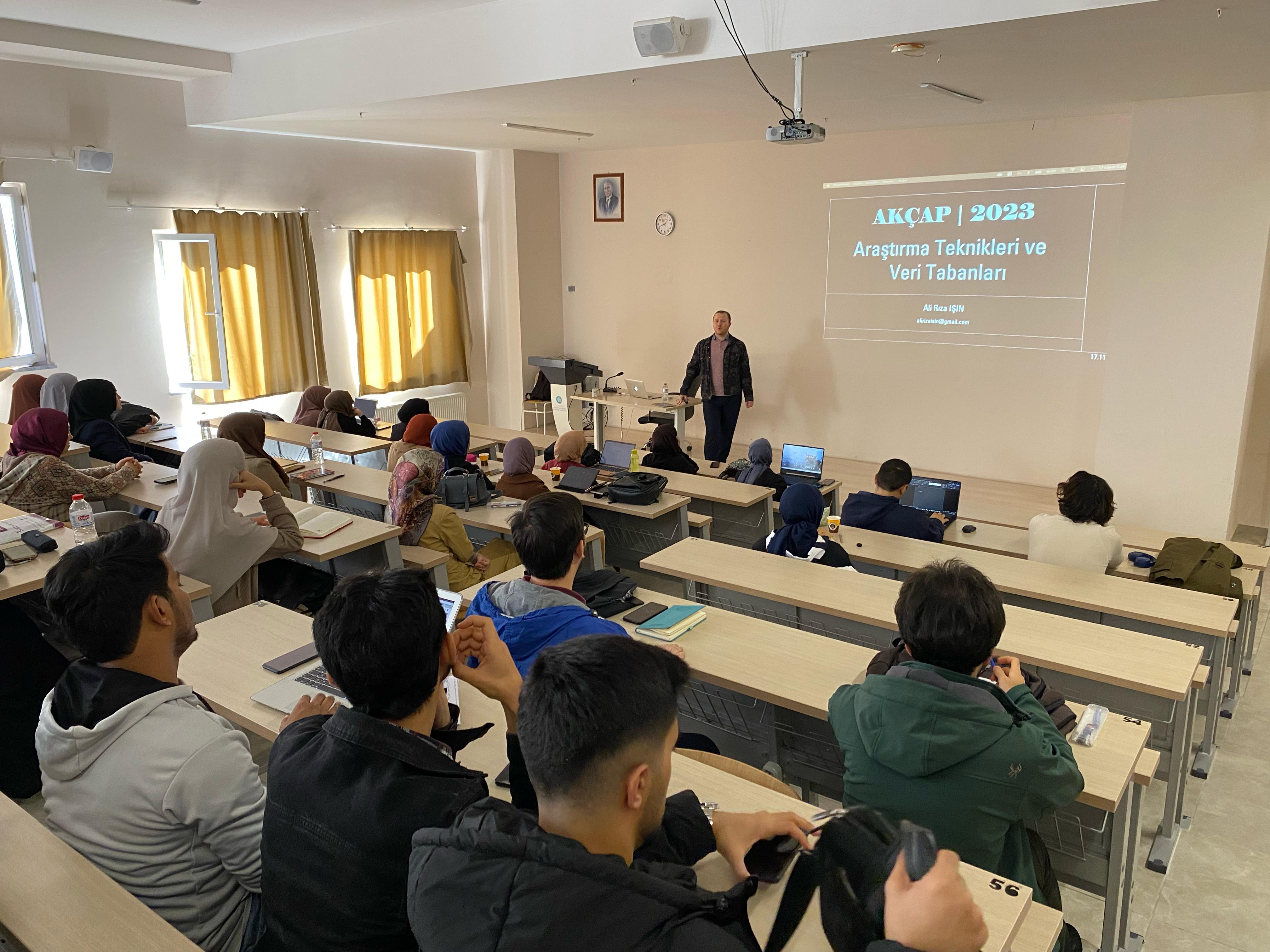 Dekanlığımız tarafından düzenlenen Akademik Çalışma Programı (AKÇAP) bünyesinde beşinci hafta dersleri gerçekleştirildi. 268 öğrencinin katıldığı programın bu haftaki dersleri 17 Kasım 2023 Cuma günü Fakültemiz Nezahat Keleşoğlu Konferans Salonunda ve 3 no’lu amfide yapıldı.