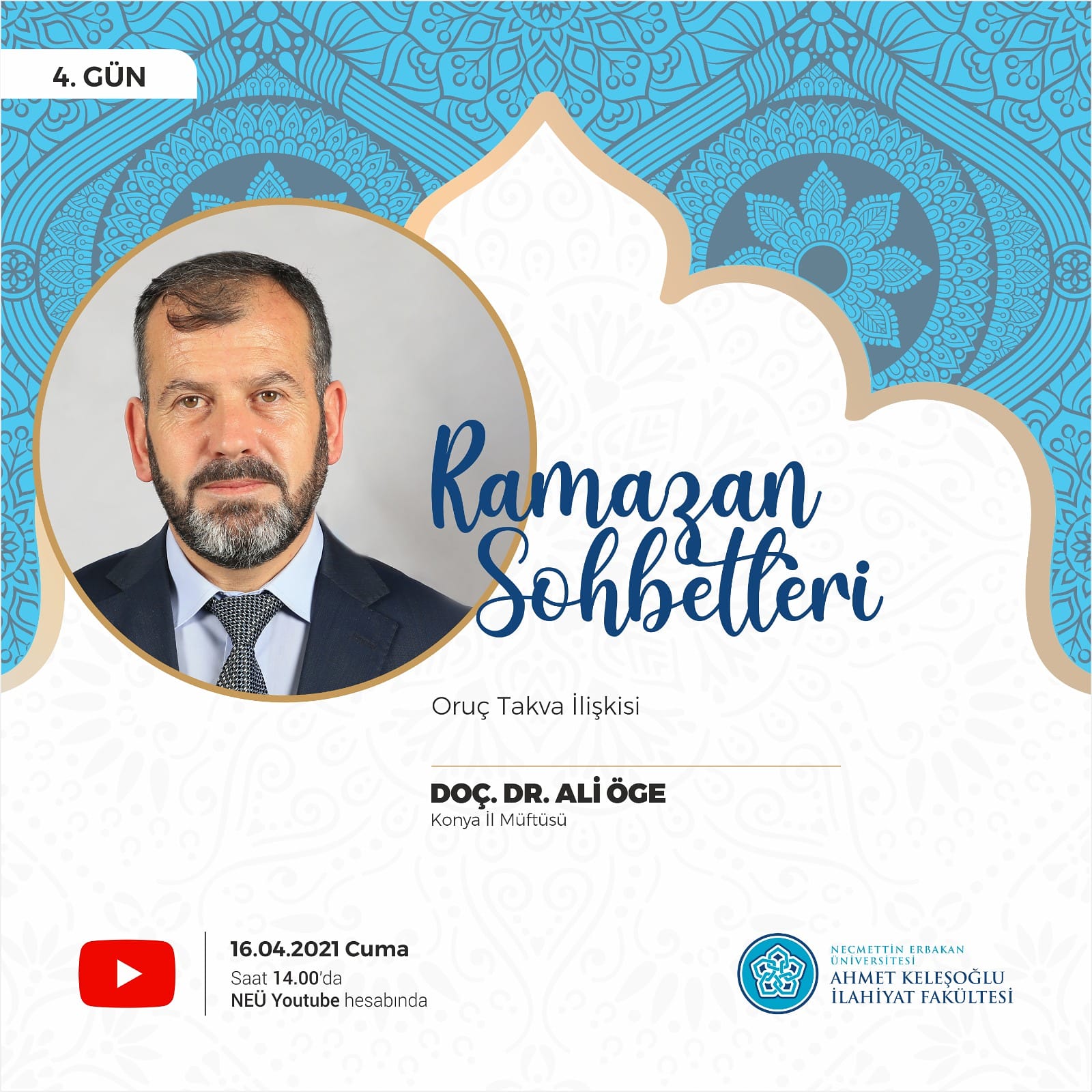 Ramazan Sohbetleri’nin 4. gün konuğu Konya İl Müftüsü Doç. Dr. Ali ÖGE