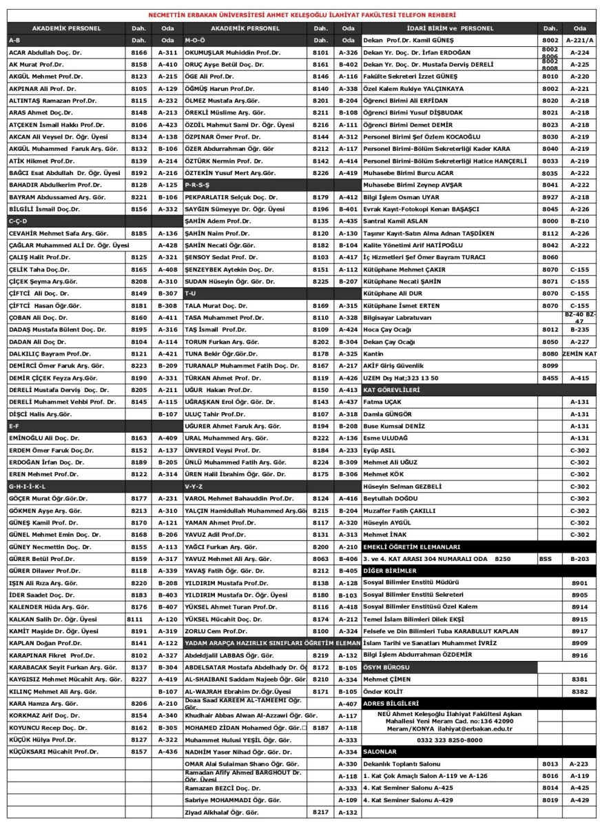 Adres: Necmettin Erbakan Üniversitesi Ahmet Keleşoğlu İlahiyat Fakültesi