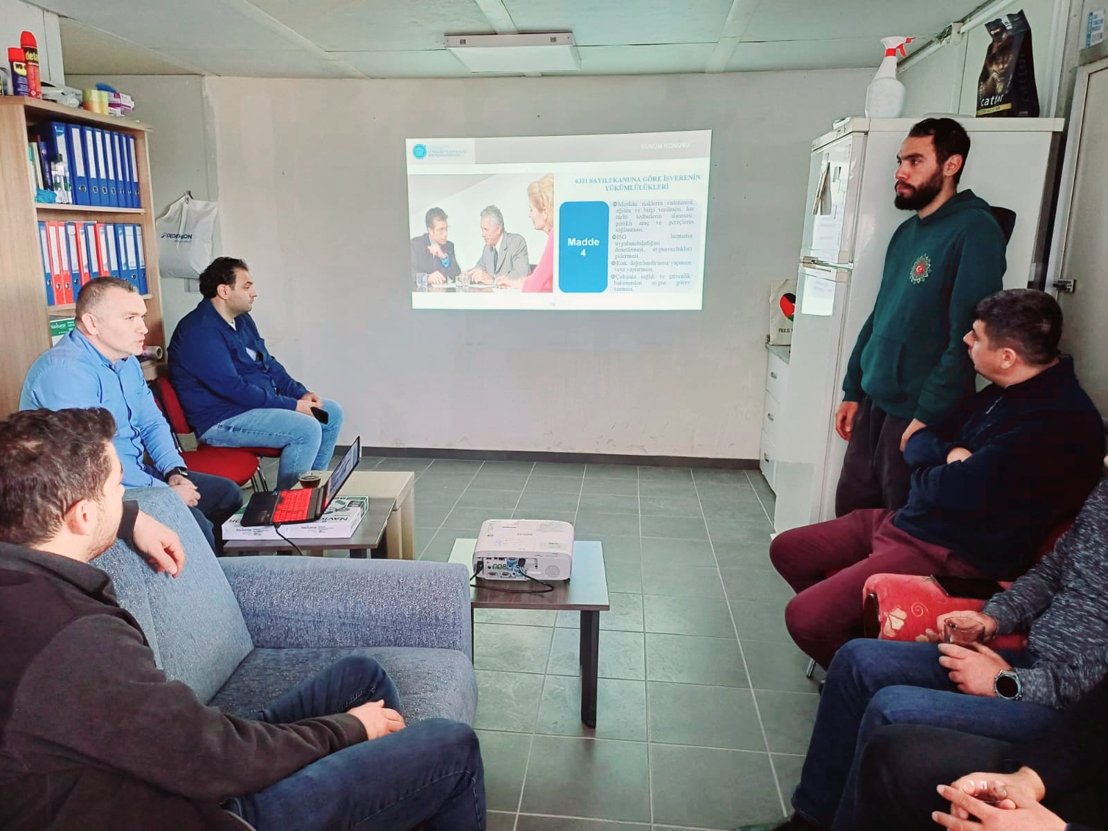 Programa, Üniversitemiz İş Sağlığı ve Güvenliği Koordinatörlüğü Koordinatör Yardımcısı ve İş Güvenliği Uzmanı Şemsettin KUNT katılım sağladı. Eğitim kapsamında; iş sağlığı ve güvenliği kültürünün güçlendirilmesi, şoför personelin karşılaşabileceği iş ve trafik kazalarının önlenmesi, güvenli sürüş ve çalışma alışkanlıklarının geliştirilmesi ile acil durumlarda alınması gereken önlemler ele alındı. Ayrıca, 6331 sayılı İş Sağlığı ve Güvenliği Kanunu’nun temel hükümleri katılımcılara örnekler eşliğinde aktarılarak uygulamaya yönelik bilgilendirmelerde bulunuldu.