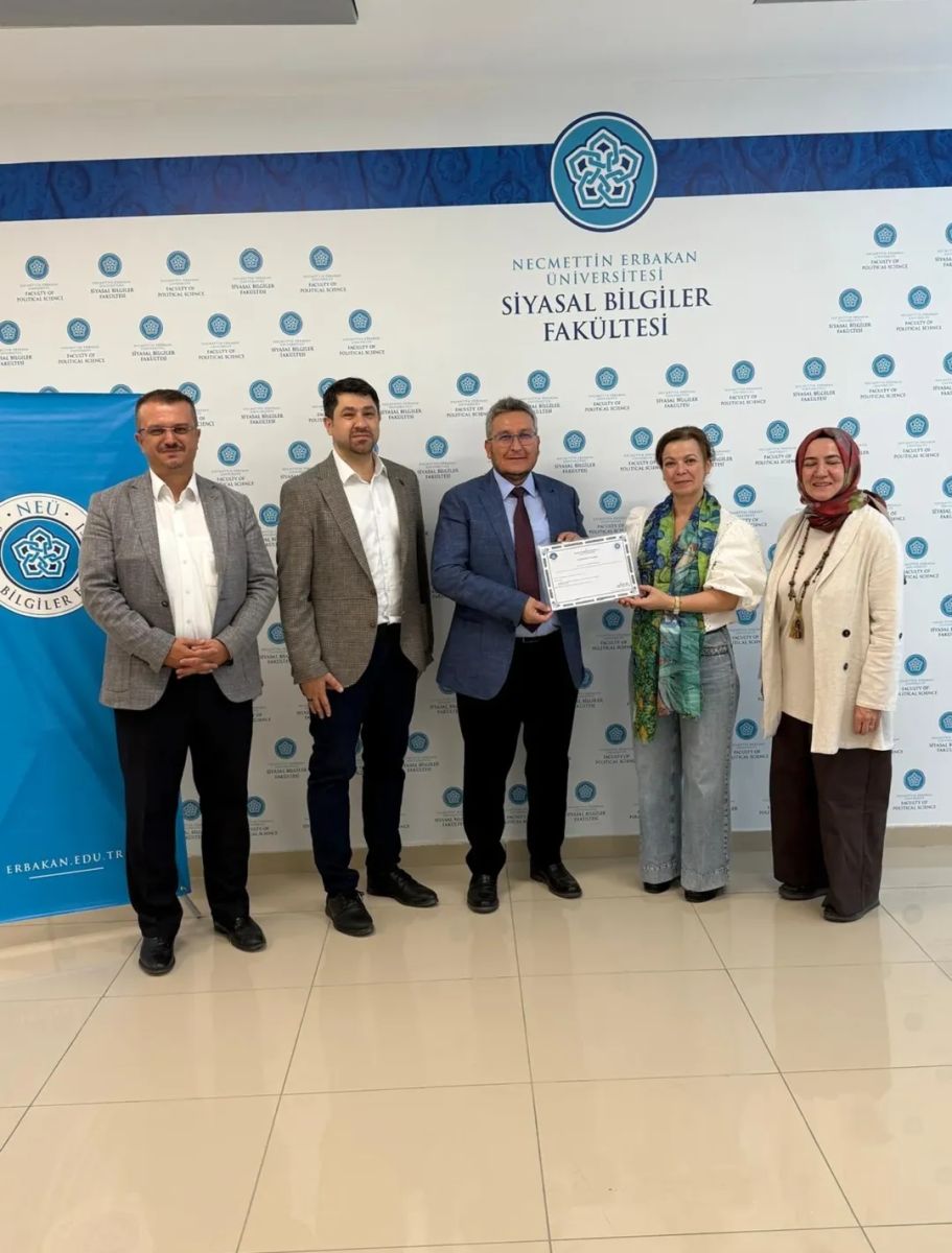 Eski Avrupa Parlamenteri ve Portekiz Madeira Üniversitesi öğretim üyesi Prof. Dr. Liliana Rodrigues Fakültemizde “Etik ve Araştırma” konusunda ders vererek, “Türkiye ve AB Müzakereleri” ilgili de öğrencilerimizle tecrübe paylaşımında bulundu. Dersin ardından Fakültemiz Dekanı Prof. Dr. Ahmet Şahbaz’ı makamında ziyaret eden sayın Liliana Rodrigues’e Dekanımız tarafından belge takdiminde bulunuldu. Ziyaretleri için sayın Rodrigues’e, programı düzenleyen Fakültemiz Dr. Öğr. Üyesi Şeyma Akın’a ve Bölümümüz öğretim üyelerine, ayrıca dersi büyük bir dikkatle dinleyen öğrencilerimize teşekkür ederiz.