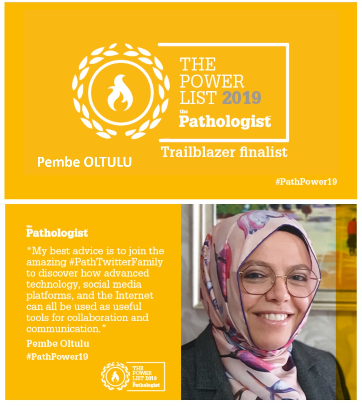 Amerikanın Patoloji alanında prestijli dergisi, The Pathologist , Powerlist 2019, Patolojinin ve Laboratuvarın en iyi, yenilikçi öncü 100 bilim insanını yayınlandı. Necmettin Erbakan Üniversitesi, Tıp Fakültesi,Tıbbi Patoloji ABD öğretim üyesi Doçent Doktor Pembe Oltulu listede yeralan tek türk bilim insanı oldu.