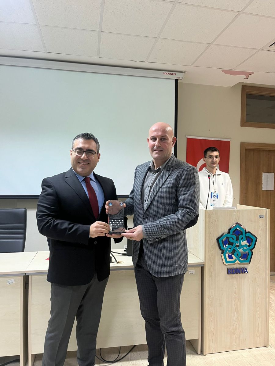 Programın sonunda, değerli bilgileri ve katkıları için konuşmacımız Celal Erdemir’e, Fakültemiz Dekanı Prof. Dr. Mustafa Kocaoğlu tarafından teşekkür plaketi takdim edilmiştir.