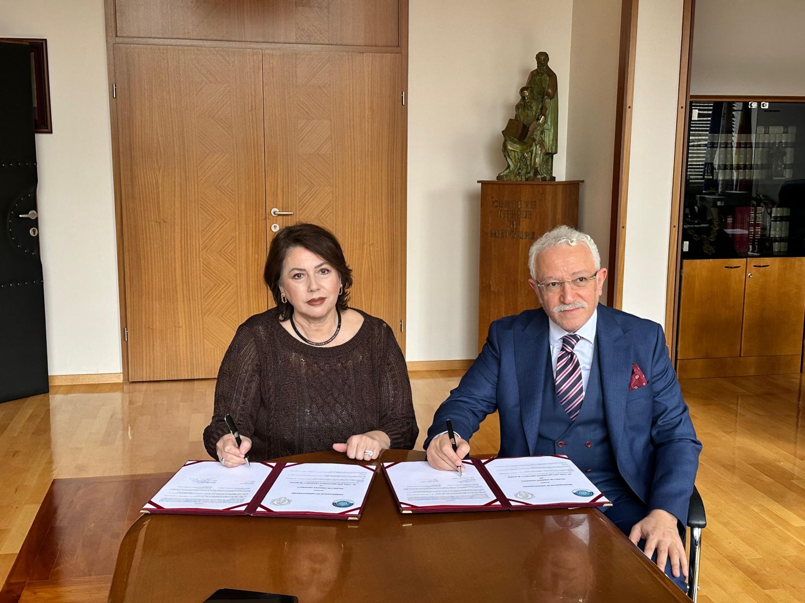 Program kapsamında Rektörümüz Prof. Dr. Cem Zorlu, ilk olarak Üsküp Aziz Kiril ve Metodiy Üniversitesi (Ss. Cyril and Methodius University) Rektörü Prof. Dr. Biljana Angelova ile bir araya geldi. Üniversiteler arasında gerçekleştirilebilecek çalışmaların ele alındığı ziyaretin ardından iki üniversite arasında iş birliği anlaşması imzalandı. Daha sonra Üsküp Aziz Kiril ve Metodiy Üniversitesi Filoloji Fakültesi Türk Dili ve Edebiyatı Bölümünü de ziyaret eden Prof. Dr. Zorlu, akademik iş birlikleri ve kültürel çalışmalar üzerine görüşmeler gerçekleştirdi.